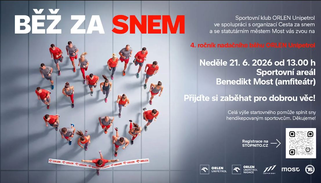 Sportovní areál Benedikt v Mostě ožije v neděli 21. června 2026 dalším ročníkem oblíbeného nadačního běhu ORLEN Unipetrol Běž za snem. Tradiční sportovně-charitativní akce propojí pohyb s podporou dobré věci a nabídne program pro běžce, rodiny s dětmi i návštěvníky, kteří si chtějí užít aktivní den. Výtěžek ze startovného poputuje na podporu handicapovaných sportovců. Nadace ORLEN Unipetrol pak vybranou částku navýší o 35 tisíc korun.