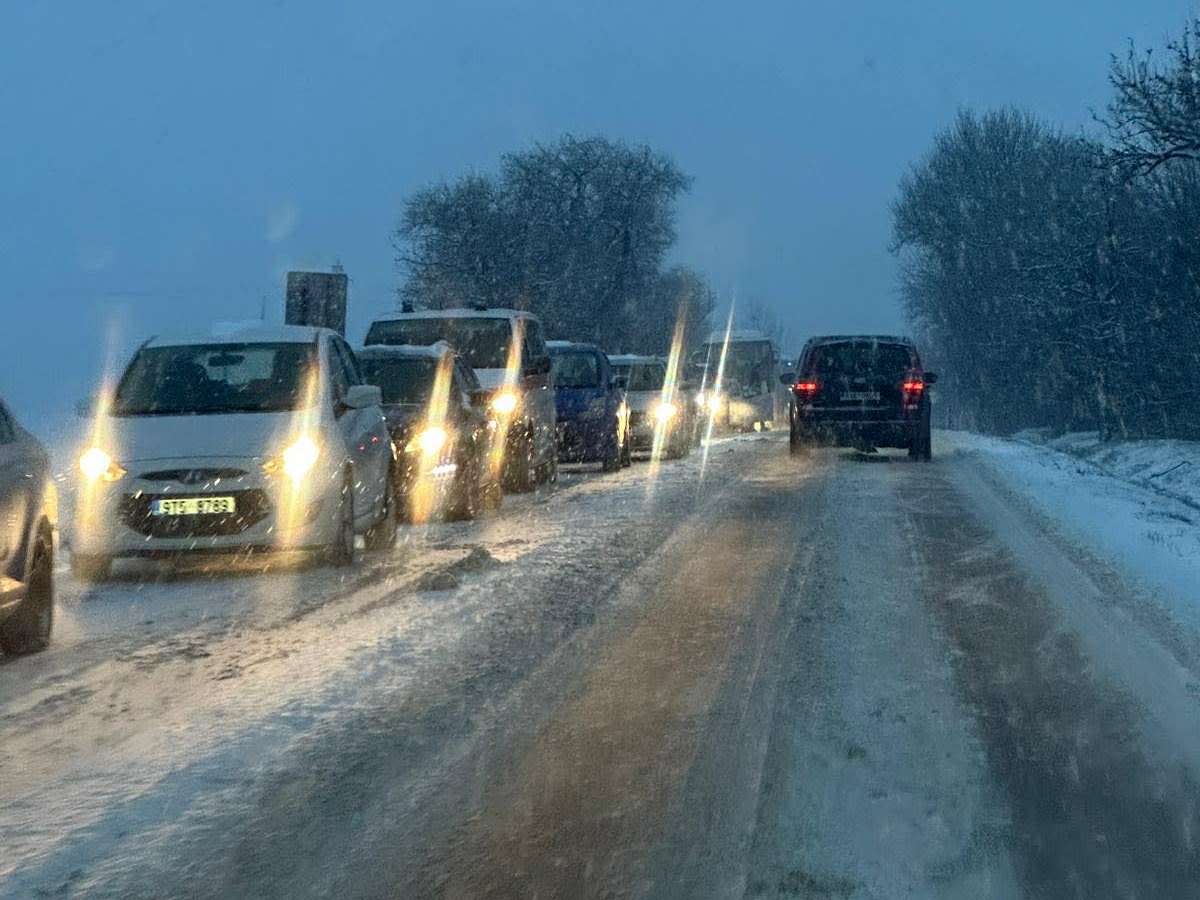 Mezi Krupkou a Teplicemi je také ledovka, a to několik kilometrů. Řidiči musí počítat se zdržením, a to do 2 hodin pro osobní vozidla.
