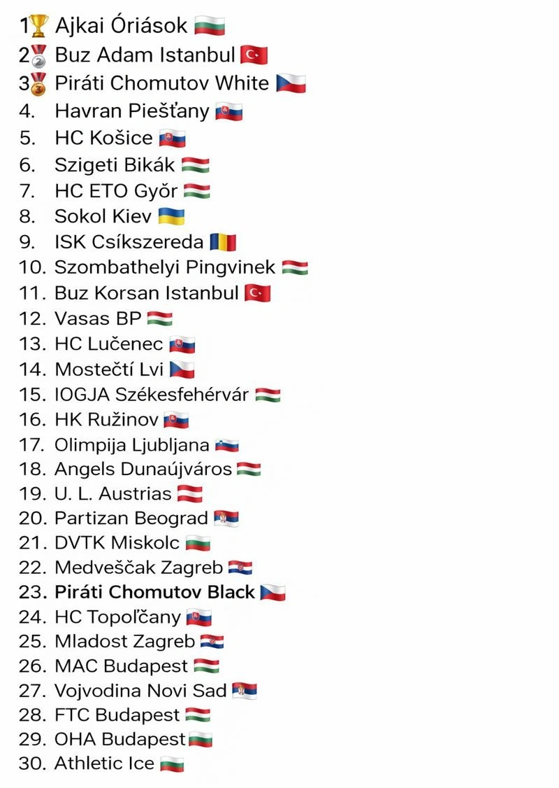 Chomutovský klub do turnaje nasadil hned dva samostatné týmy – Piráti Chomutov Black a Piráti Chomutov White. Oba celky změřily síly v elitní divizi, která čítala 30 týmů z jedenácti zemí.