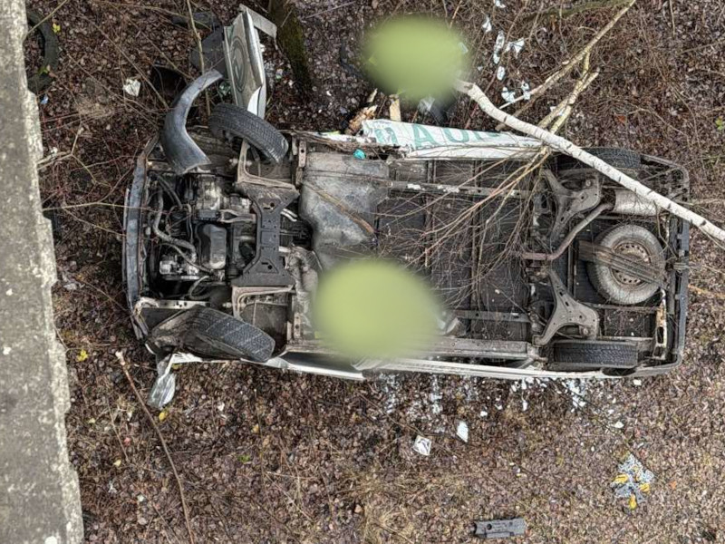 Vozidlo mělo spadnout ze zhruba dvanáctimetrové výšky a dopadlo na střechu. Okolnosti a příčinu nehody na místě vyšetřují policisté.