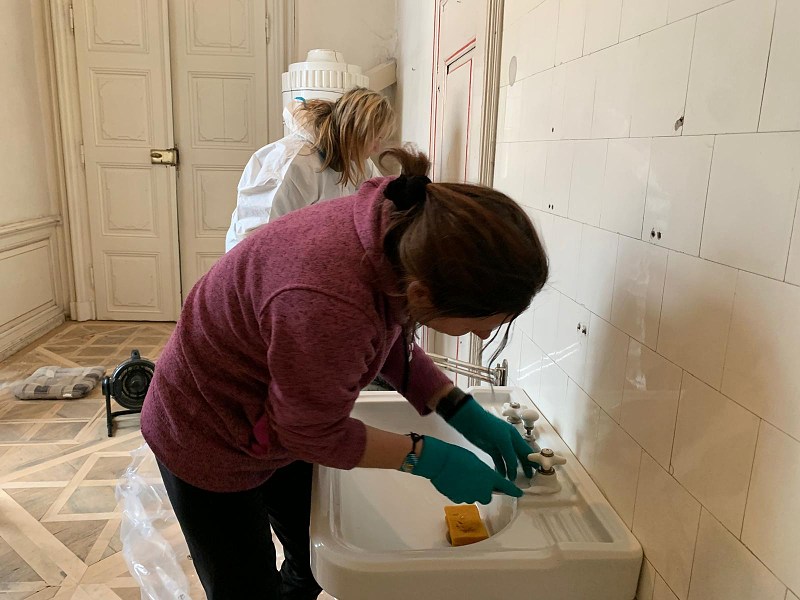„Vždy se dvě až tři místnosti z prohlídkového okruhu kompletně vyklidí a vystěhují do dalších sálů. Nábytek se vysaje, naleští, zbaví prachu, vyperou se záclony a závěsy,“ popisuje postup kastelán. Letošní zima je navíc výjimečná péčí o podlahy. „Po několika desítkách let se čistí i parkety speciálním strojem, který máme zapůjčený ze zámku Stekník, se kterým jsme začali velmi úzce spolupracovat. Strojem se parkety brousí, pak se místnost vysaje, napustí voskovou emulzí a pak se podlaha naleští,“ dodává Milan Vaněrka.