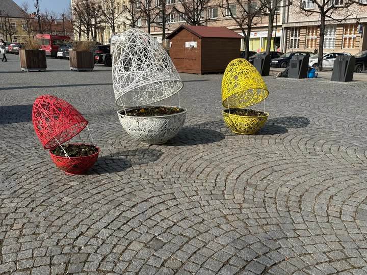 Dekorace v červené, bílé a žluté barvě rozzářily dlážděný prostor náměstí a určitě se stanou vyhledávaným cílem pro krátké zastavení. Pokud se chcete i vy naladit na nadcházející svátky jara, Mírové náměstí je teď tím pravým místem.