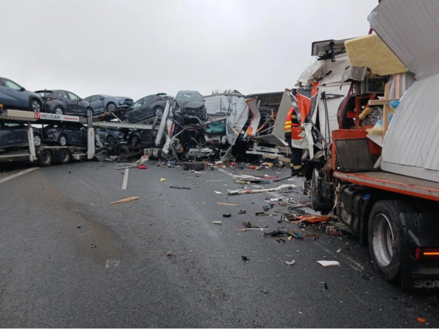 Petrovice – Na dálnici D8 se v pondělí odpoledne stala vážná dopravní nehoda. Na 89,5. kilometru ve směru na Německo, před sjezdem na Petrovice, se krátce po druhé hodině srazily tři kamiony. Dálnice je v tomto úseku aktuálně zcela uzavřena.