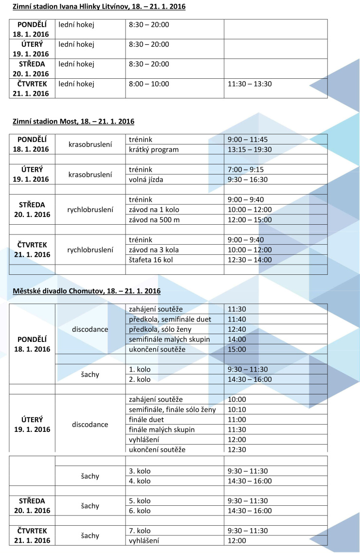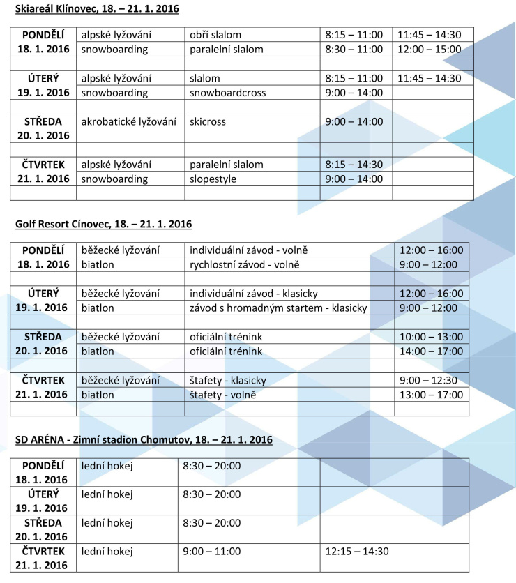 Rozpis soutěží na severočeských sportovištích při velkých hrách v Ústeckém kraji: