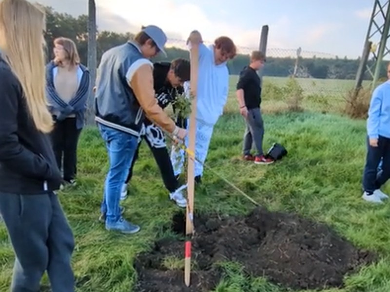 Krásný Dvůr - 2. říjen 2025 byl na na naší škole ve znamení obnovy ovocného sadu. Všichni žáci základní školy a mateřské školy, pedagogové současní i bývalí, zaměstnanci a zástupci vedení obce Krásný Dvůr se sešli v 8:00 na pozemku školy a podíleli se na výsadbě ovocných stromů. Starší pomáhali mladším, velcí malým.