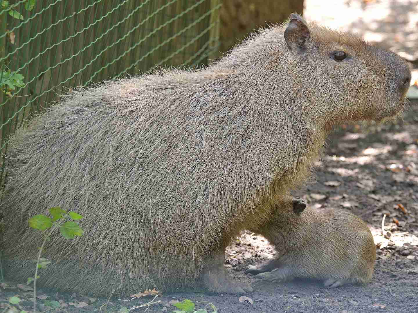 Kapybara je zvíře, které najdete vždy blízko u vody. Je výborným plavcem a dovede se i potápět. Pro pohyb ve vodě je dokonale uzpůsobena, mezi prsty má plovací blány. Vodní prostředí vyhledávají kapybary nejen jako oblast s bohatým travním porostem (název "kapybara" má původ v nářečí indiánského kmene Guarani a znamená "pán trávy"), ale i z termoregulačních důvodů, neboť na souši se jejich mohutné tělo rychle přehřívá. Tato „přerostlá morčata", jak jim lidé často říkají, pocházejí z tropických krajů Jižní Ameriky východně od And. Mohou dorůstat do hmotnosti až 80 kilogramů, délka těla se pohybuje v rozmezí od 1 do 1,3 metru a kohoutková výška na hranici 50 centimetrů. Samice je březí 149 až 156 dní a jednou či dvakrát do roka rodí 1-8 mláďat. (TZ)