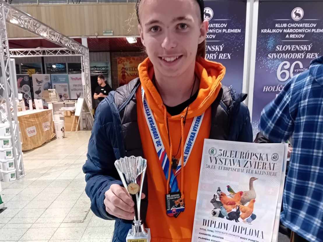 Žatec - Mladý chovatel Petr Khůn z 2.A oboru Agropodnikání OA a SOŠ zemědělské a ekologické v Žatci dosáhl mimořádného úspěchu na evropské výstavě drobného zvířectva v Nitře, ze které si odnesl hned dvě prestižní ocenění – titul Mistr Evropy v kategorii Mladý chovatel a Čestnou cenu za své vynikající chovatelské výsledky.