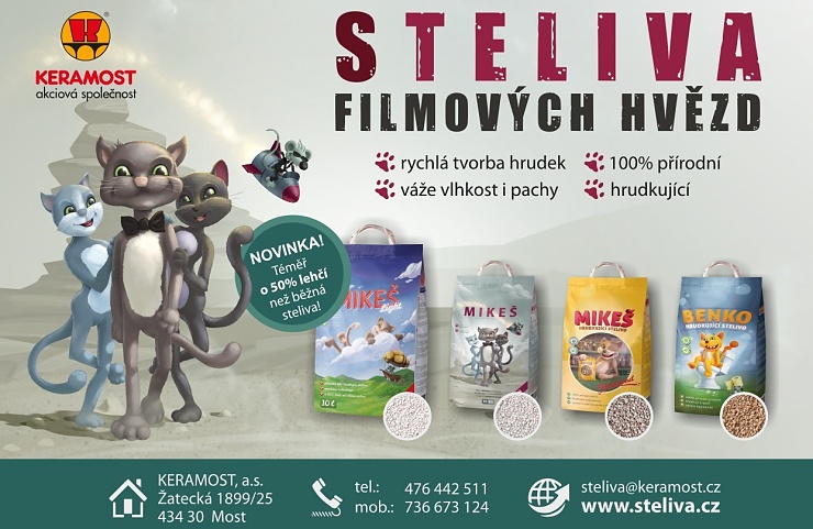 Po více než 20 letech jsme přistoupili k celkovému přepracování vizuální podoby stávajících obalů. Rádi bychom prezentovali steliva v obalech, které budou vyjadřovat emoce tolik vlastní všem kočičím společníkům člověka. Zejména pak hravost, pohodu a veselost doplněnou o rošťáctví v podobě myšího záškodníka, spojujícího celou produktovou řadu. Věříme, že nové obaly brzy naleznete ve vašich oblíbených obchodech a zjistíte, že i přes změnu obalů zůstala zachována kvalita a funkčnost steliva. Spokojený zákazník je totiž hlavním krédem akciové společnosti KERAMOST.